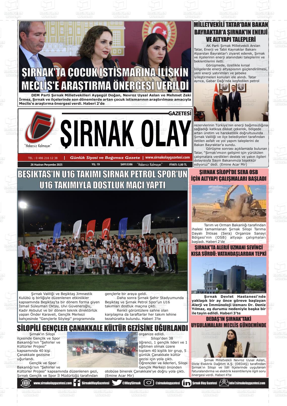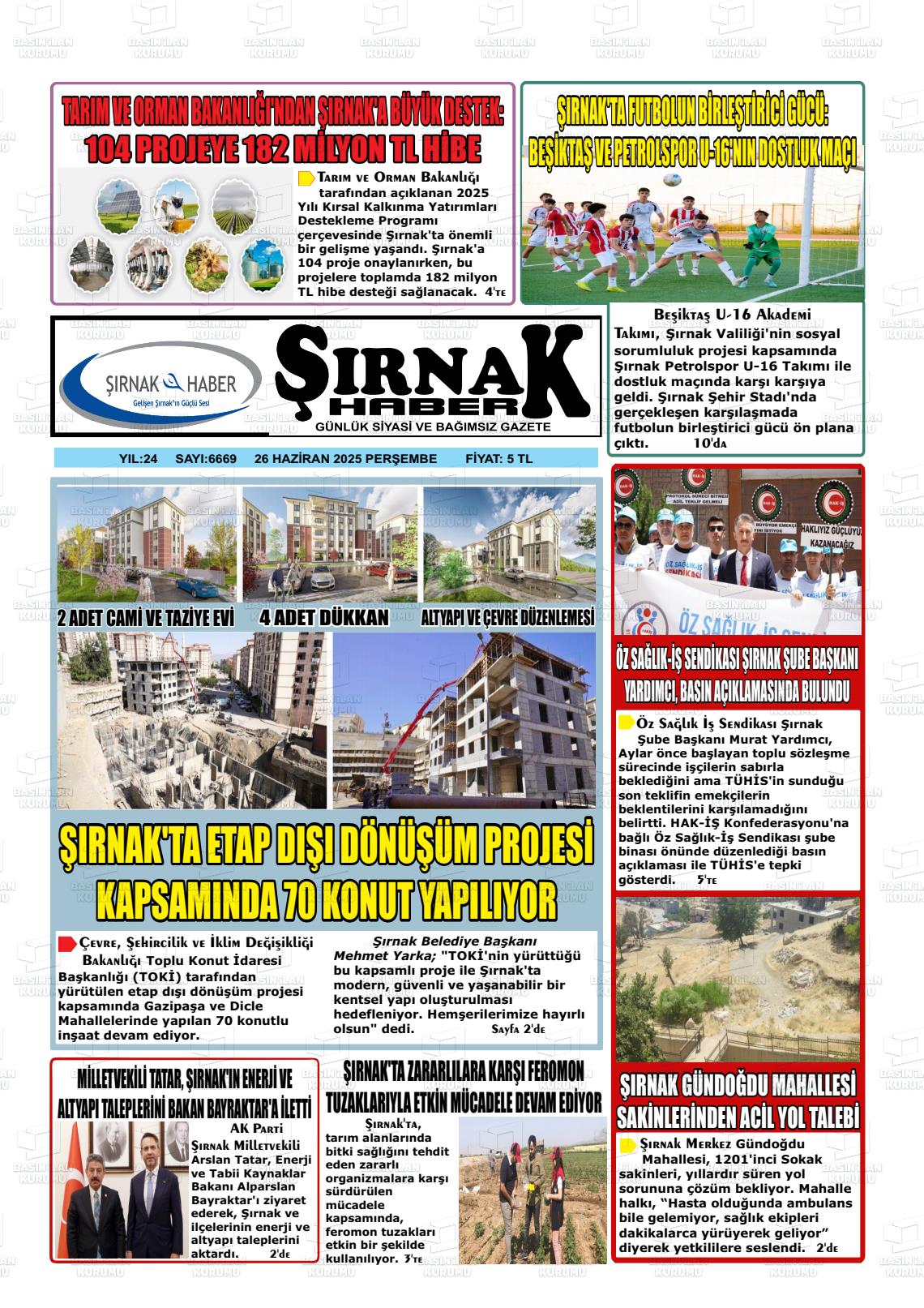 Şırnak Yerel Gazeteleri 17 Mart 2026, Salı Günü Manşeti