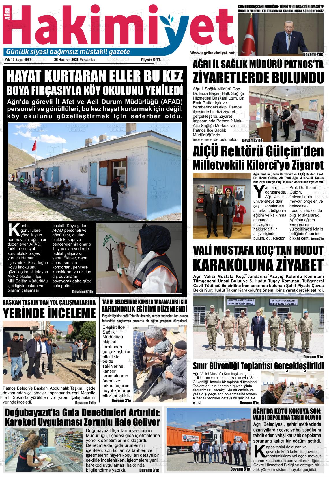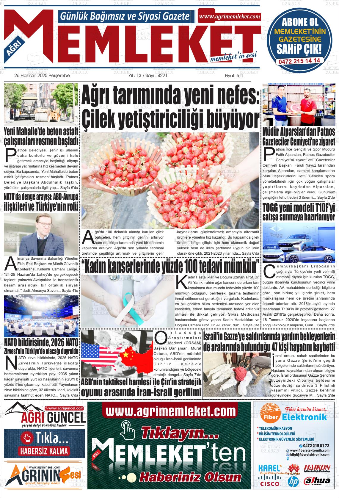 Ağrı Yerel Gazeteleri 17 Mart 2026, Salı Günü Manşeti
