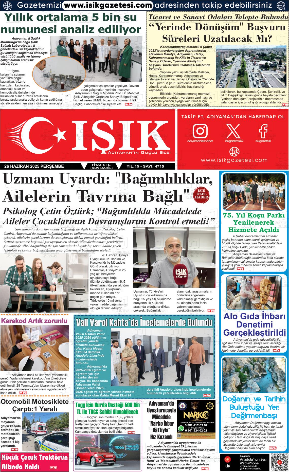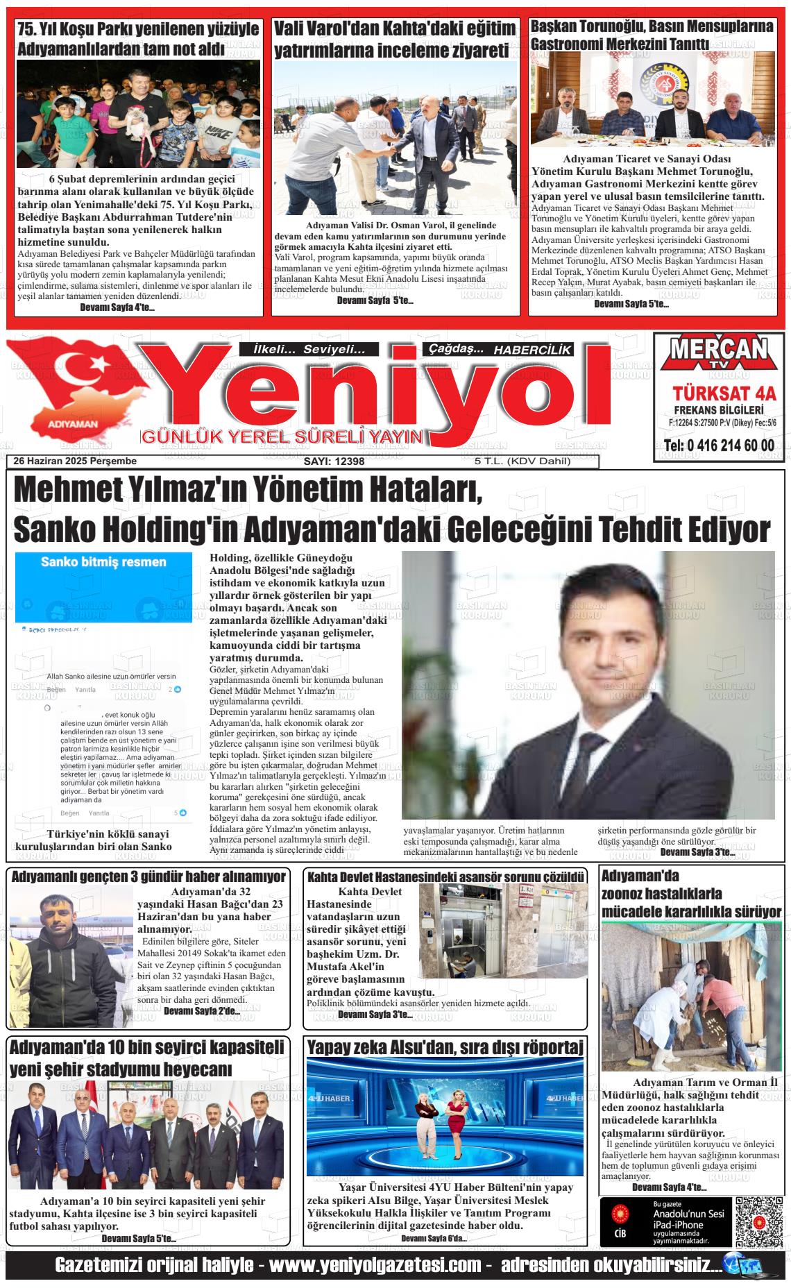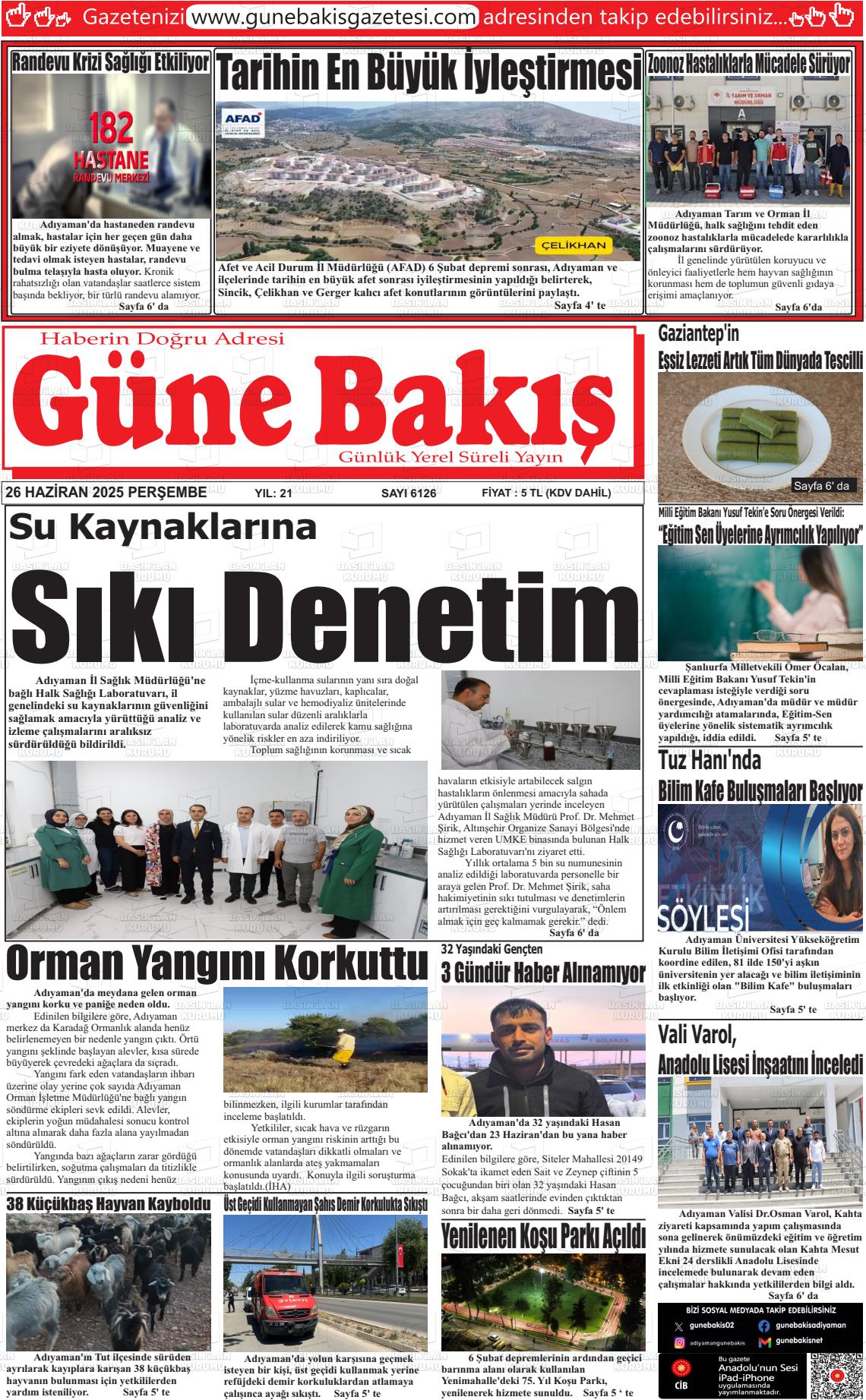 Adıyaman Yerel Gazeteleri 01 Nisan 2026, Çarşamba Günü Manşeti