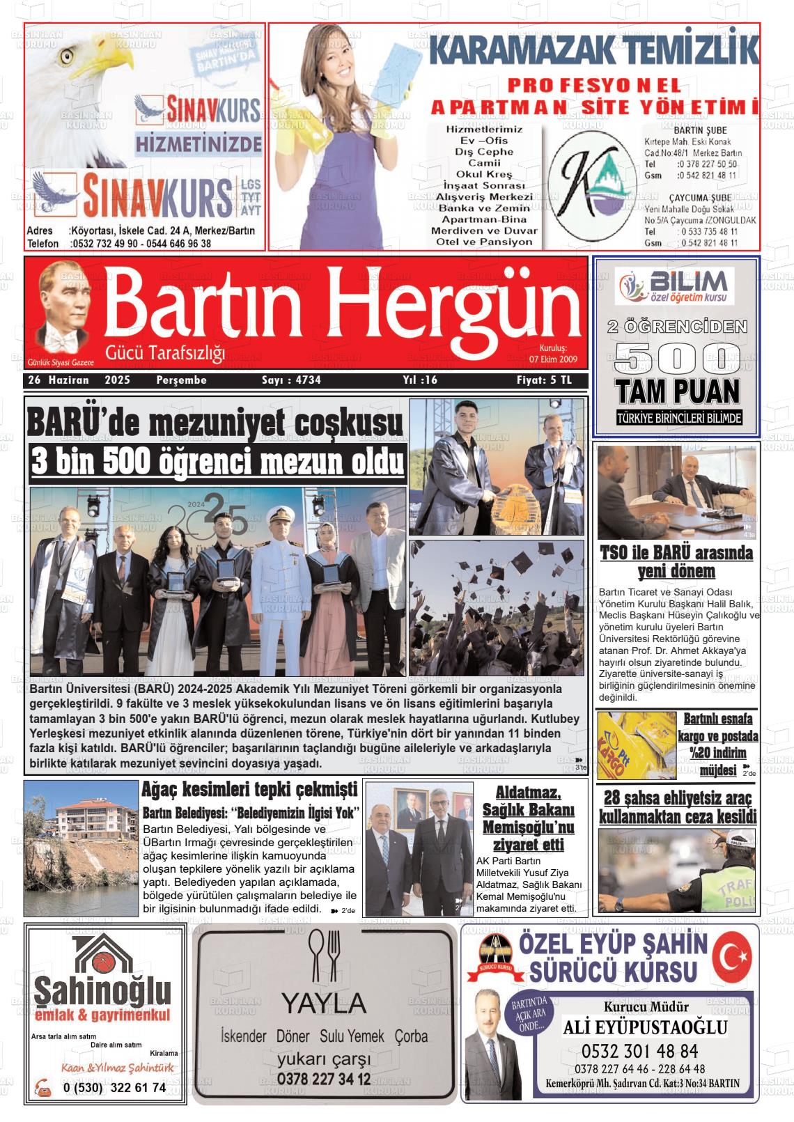 Bartın Yerel Gazeteleri 17 Mart 2026, Salı Günü Manşeti