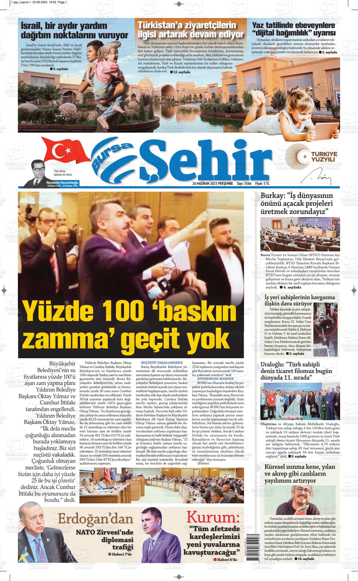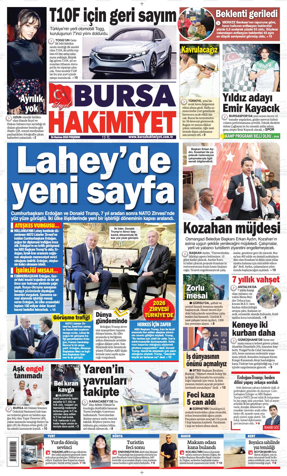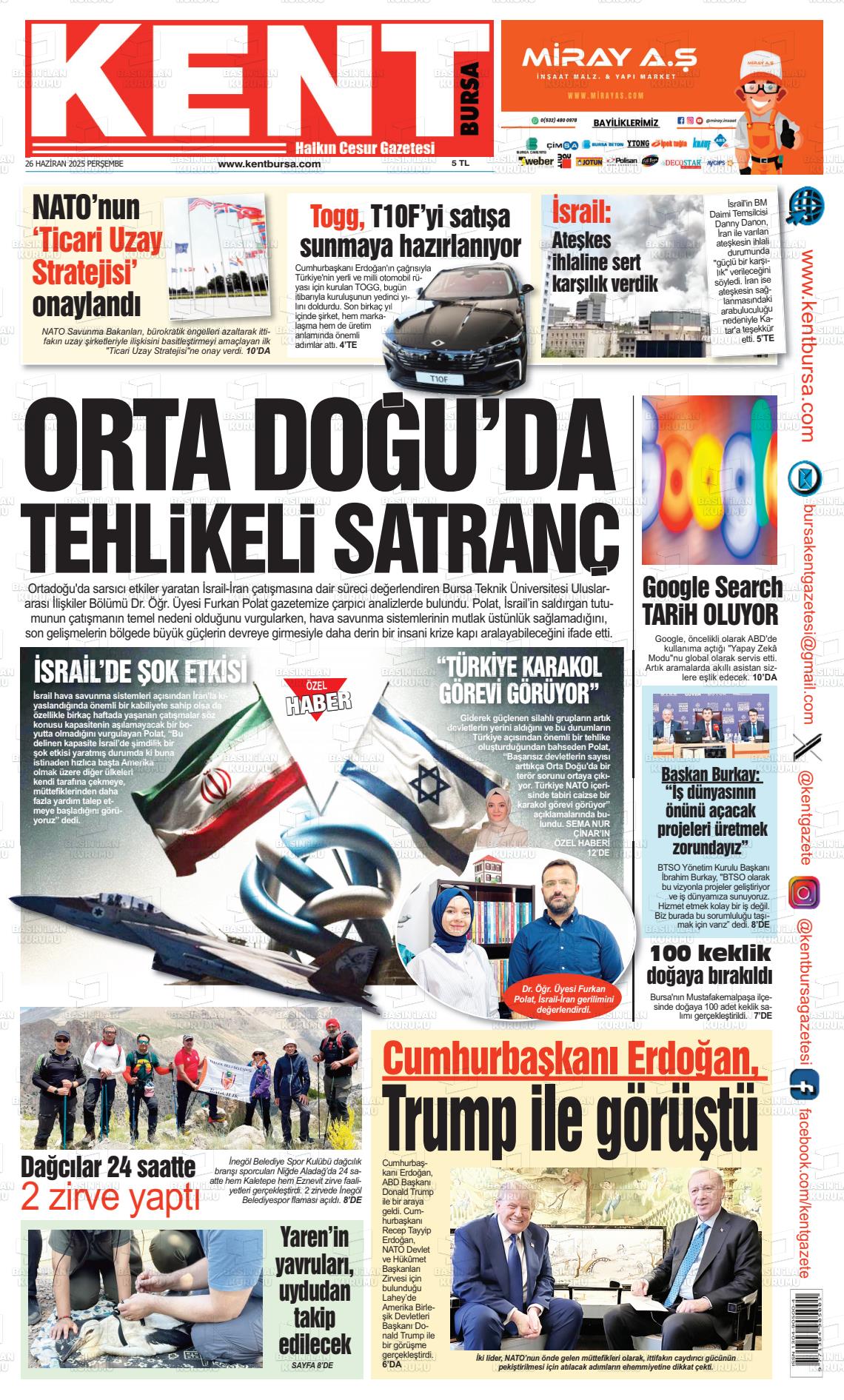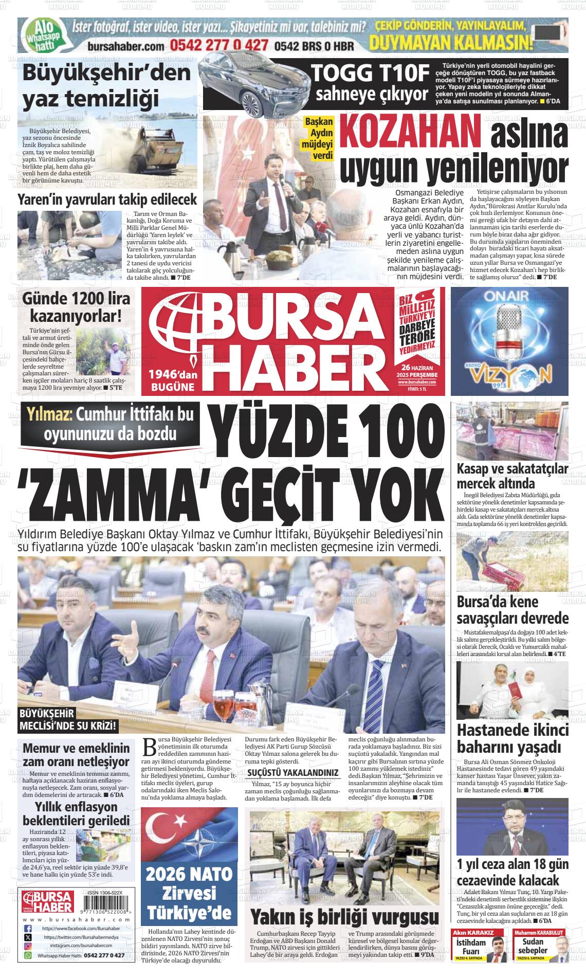 Bursa Yerel Gazeteleri 25 Ocak 2026, Pazar Günü Manşeti