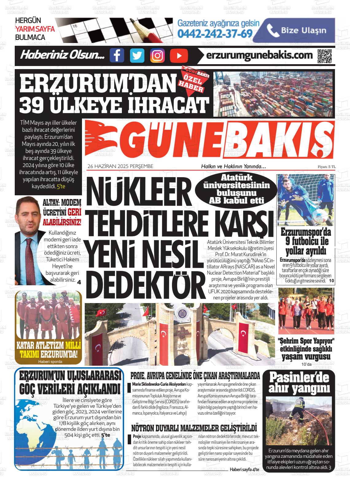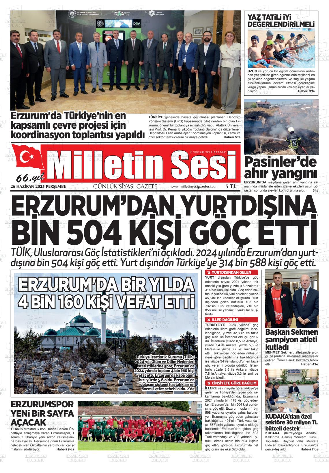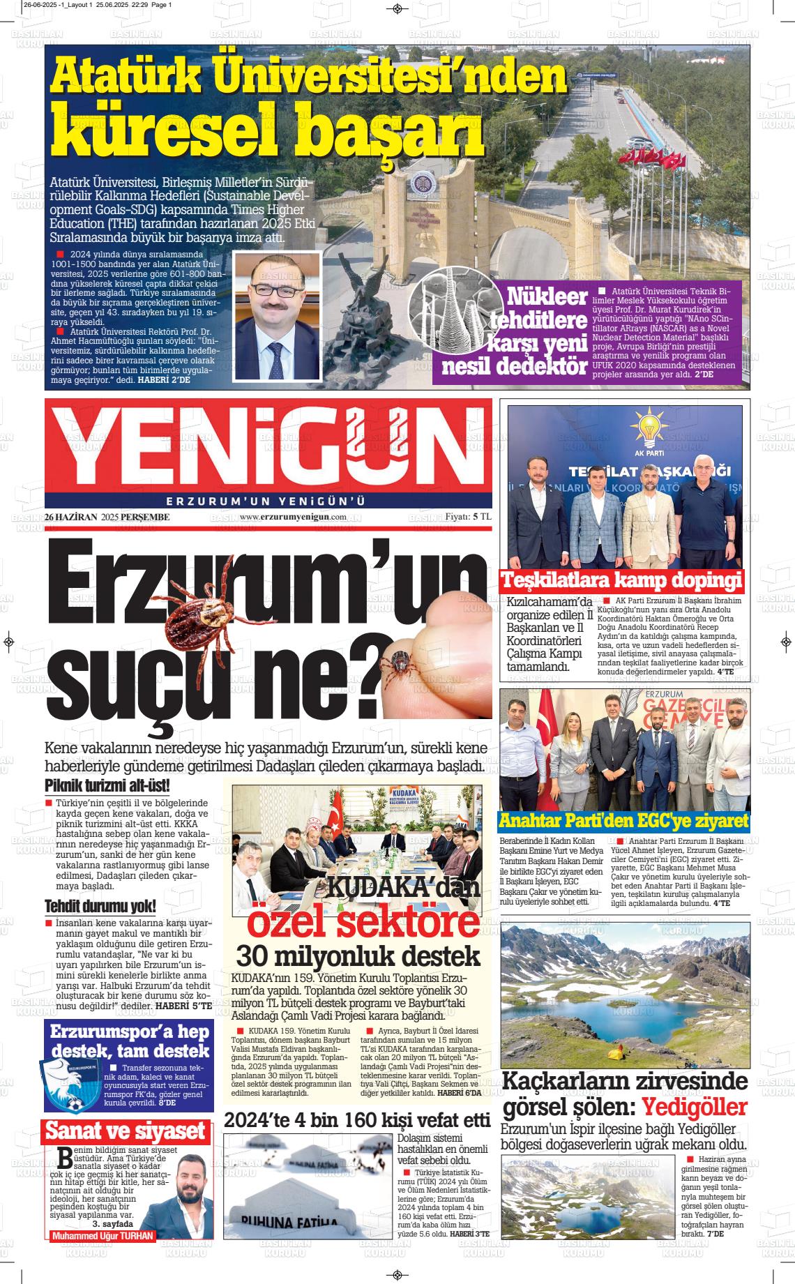 Erzurum Yerel Gazeteleri 17 Mart 2026, Salı Günü Manşeti