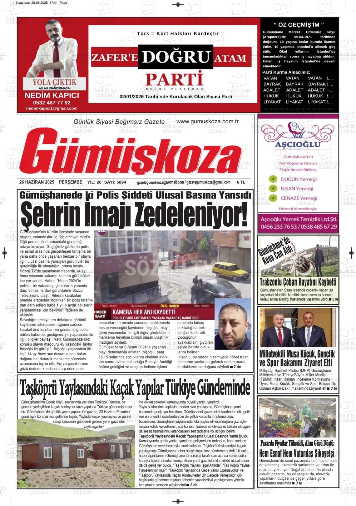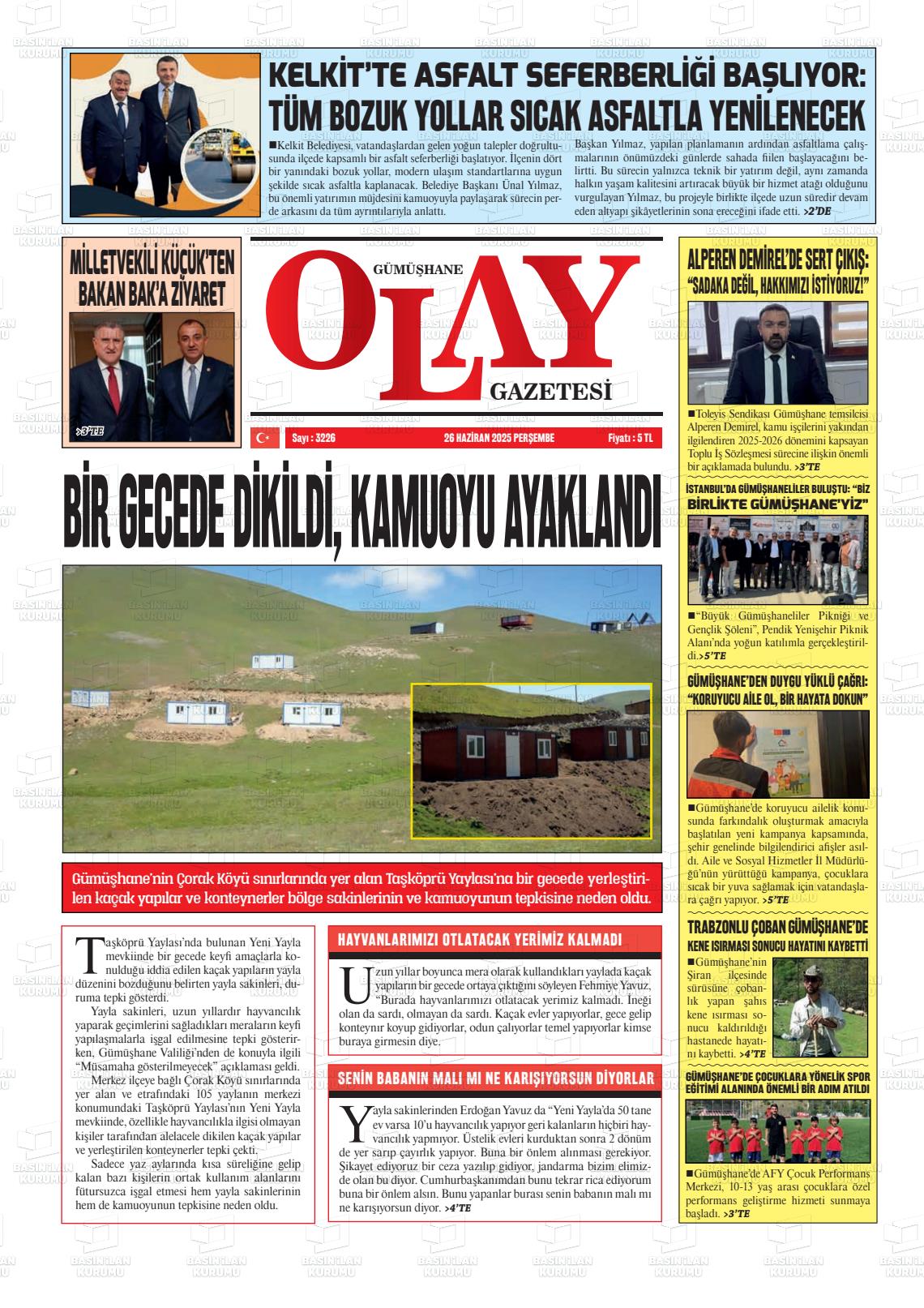 Gümüşhane Yerel Gazeteleri 17 Mart 2026, Salı Günü Manşeti