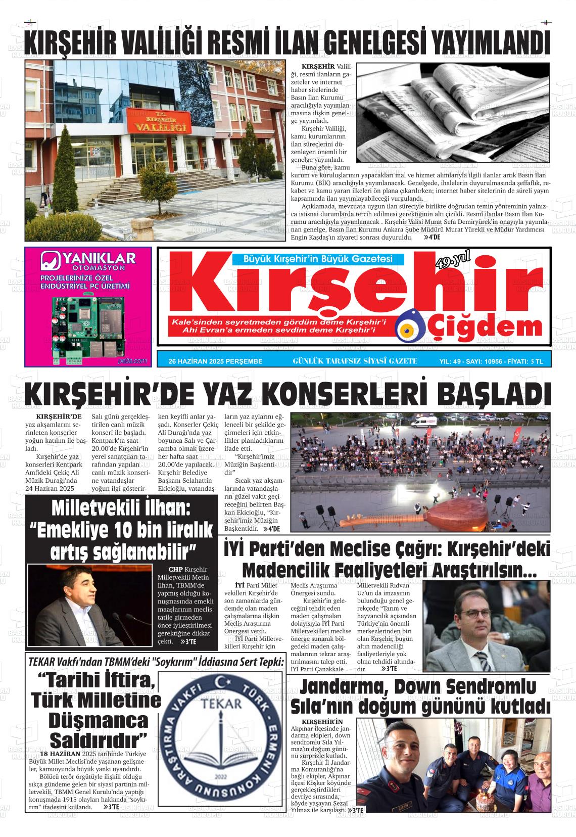 Kırşehİr Yerel Gazeteleri 17 Mart 2026, Salı Günü Manşeti