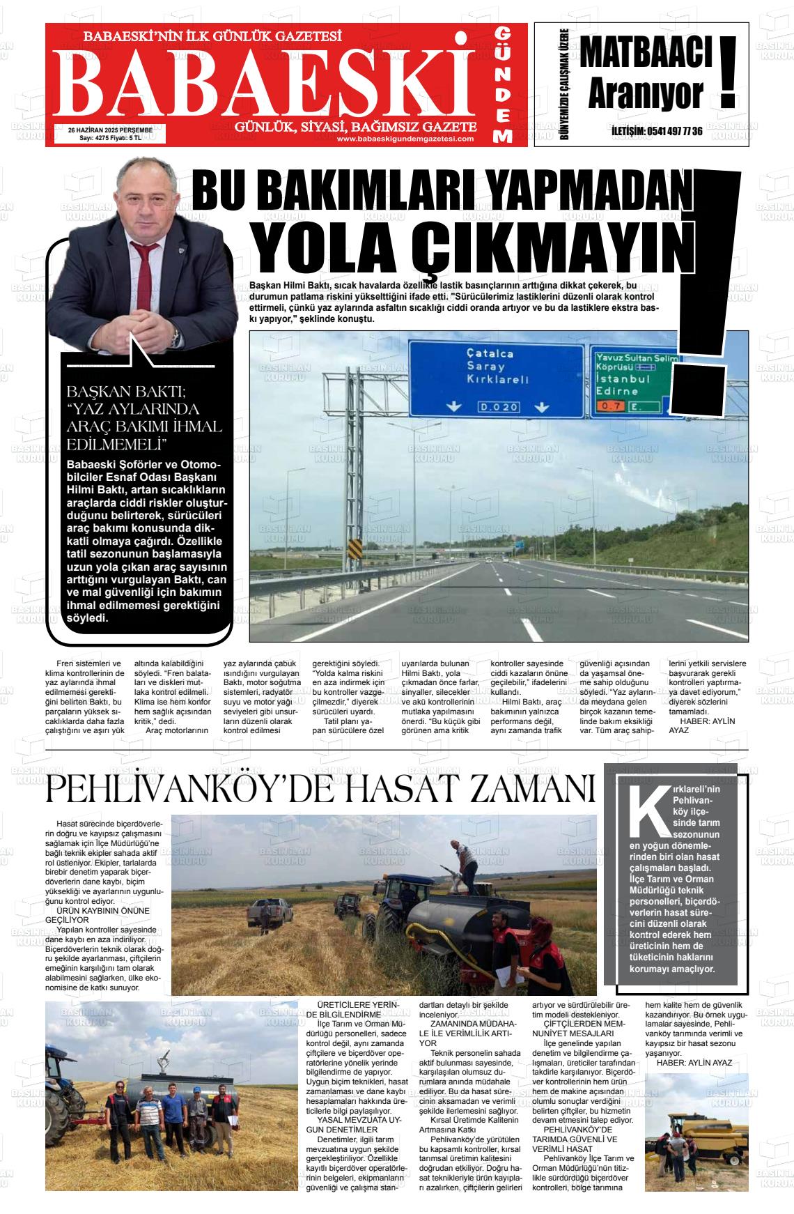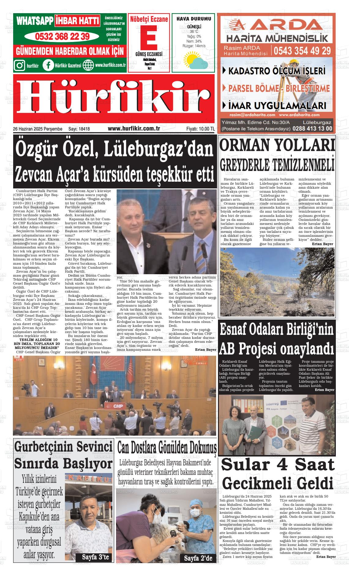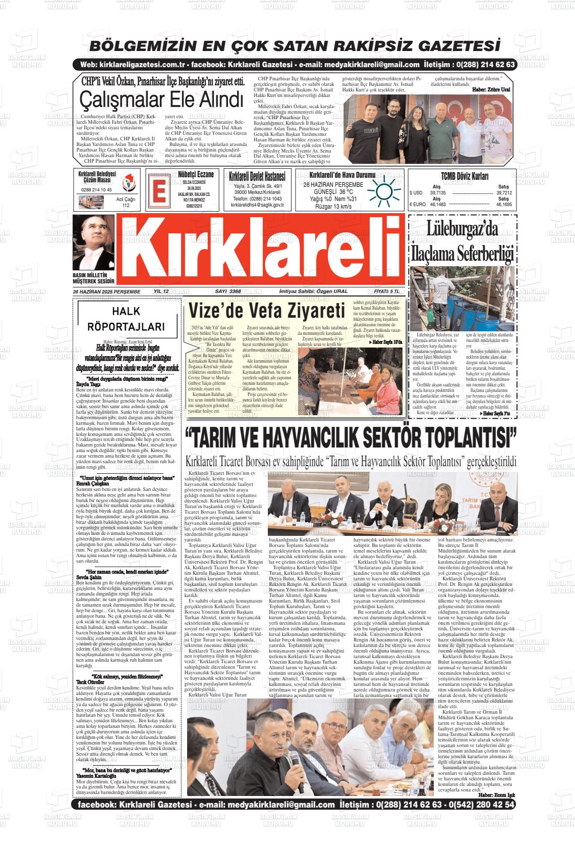 Kırklarelİ Yerel Gazeteleri 17 Mart 2026, Salı Günü Manşeti