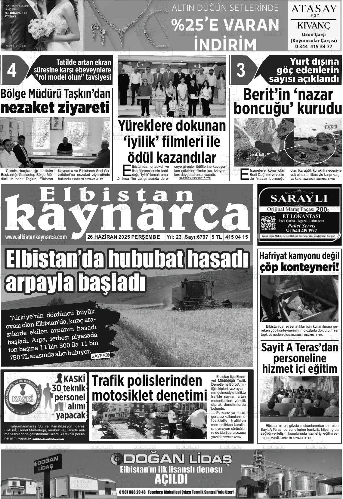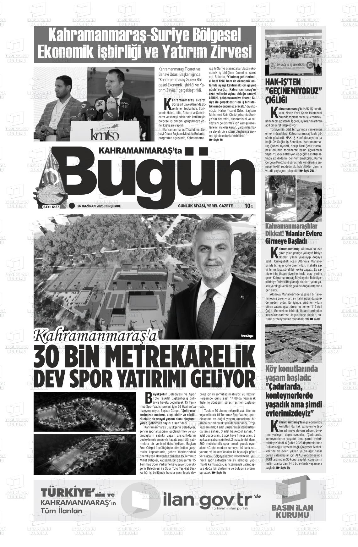 Kahramanmaraş Yerel Gazeteleri 17 Mart 2026, Salı Günü Manşeti
