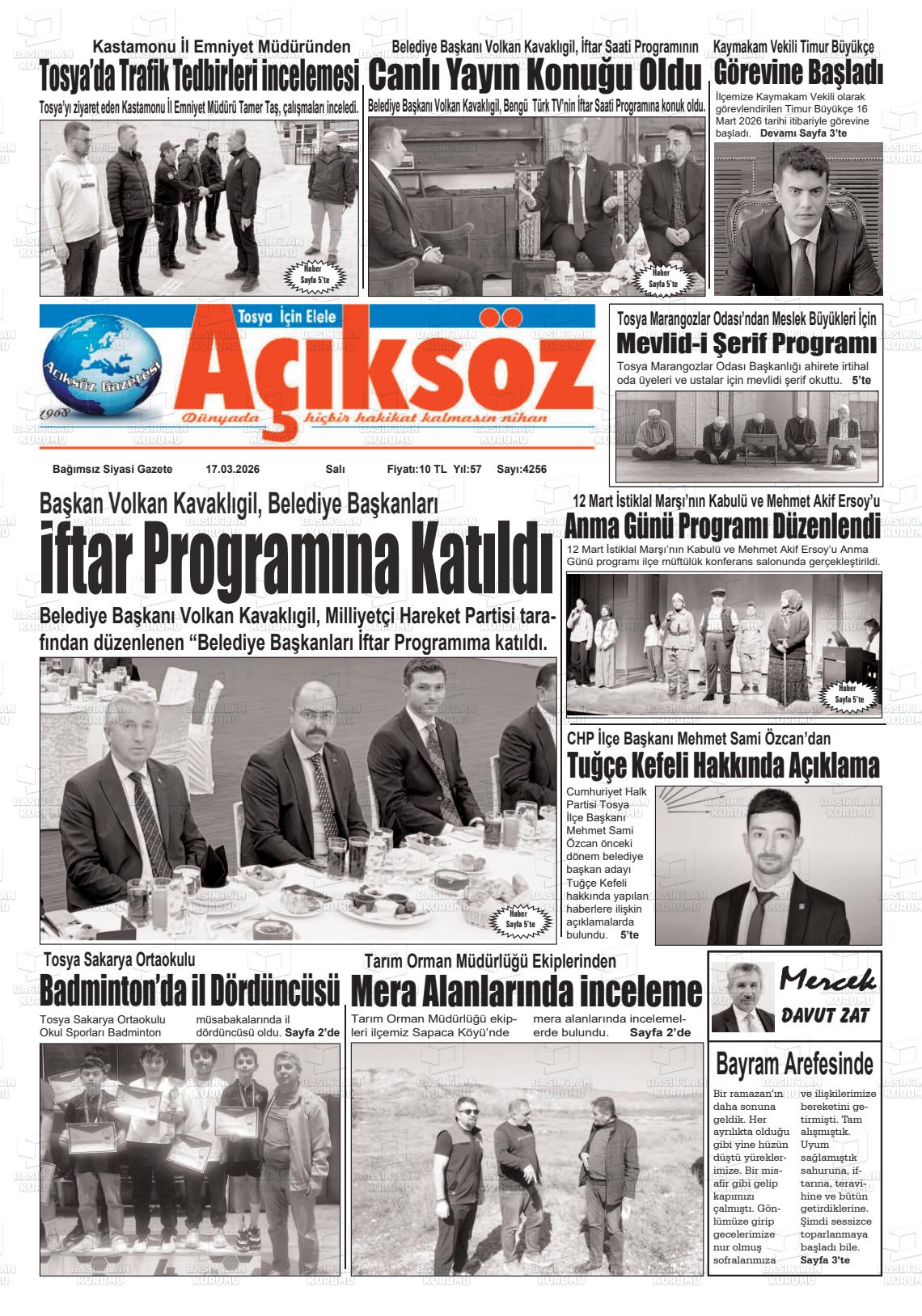 Kastamonu Yerel Gazeteleri 17 Mart 2026, Salı Günü Manşeti
