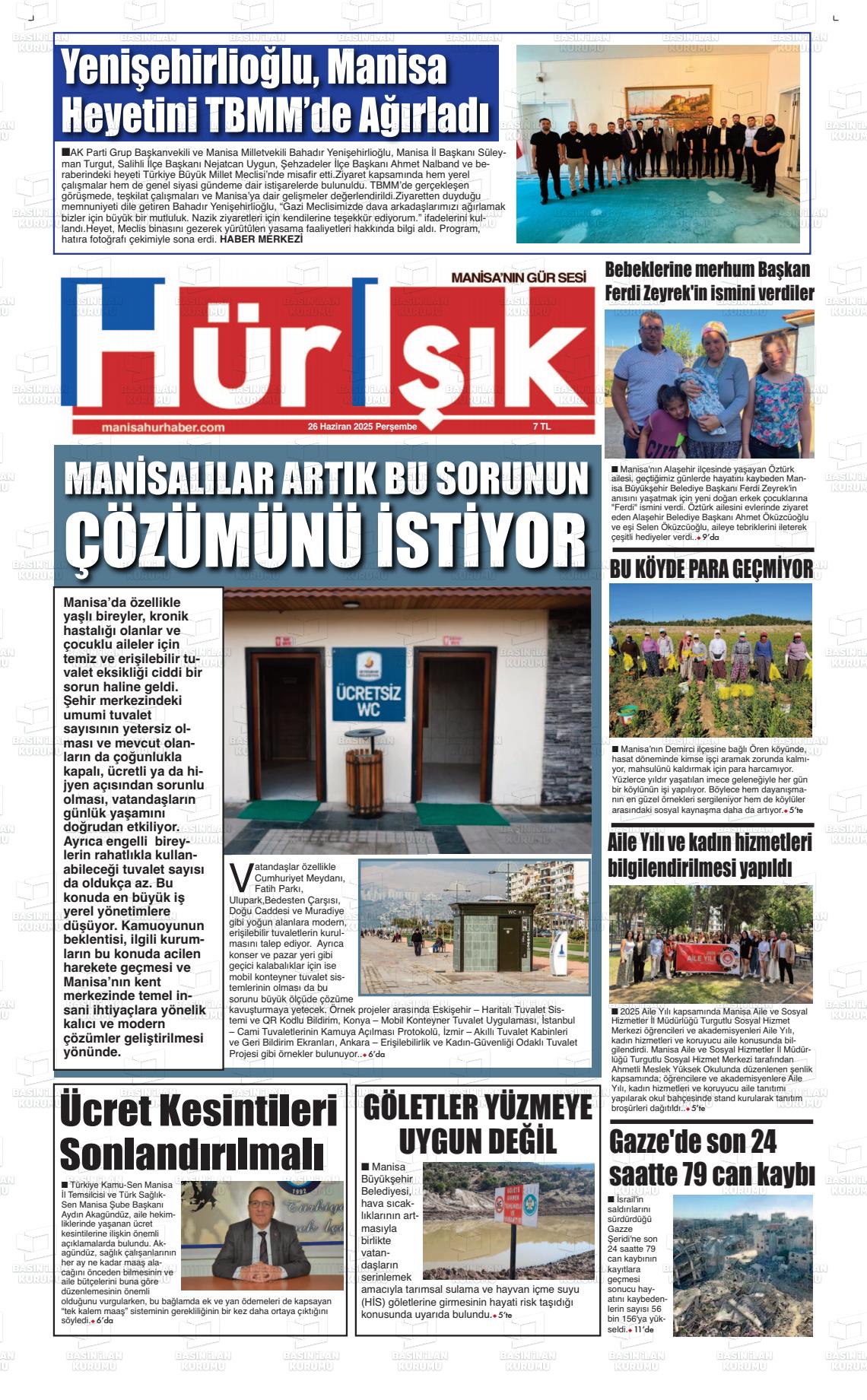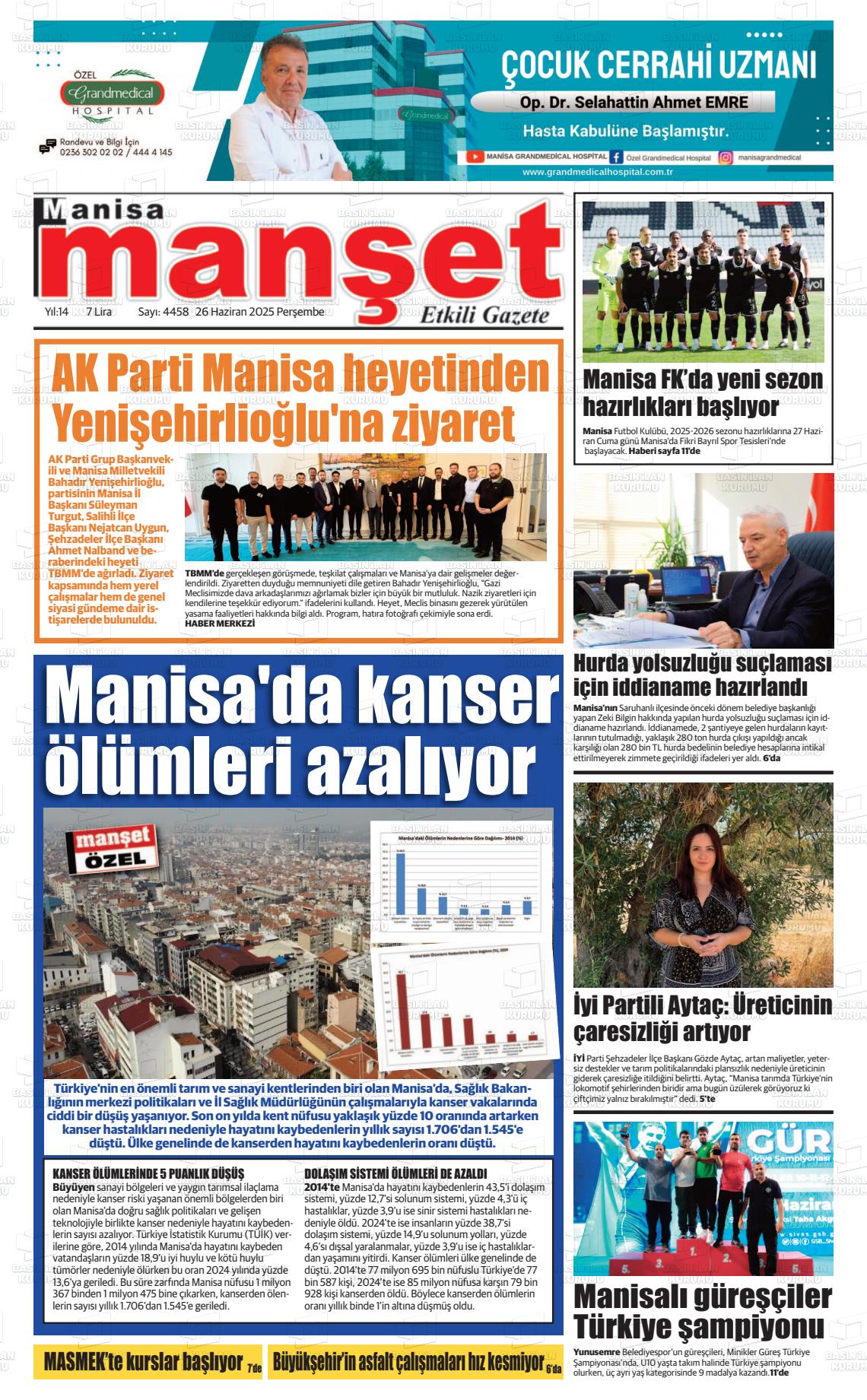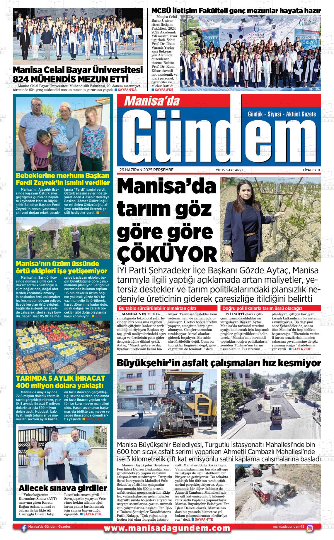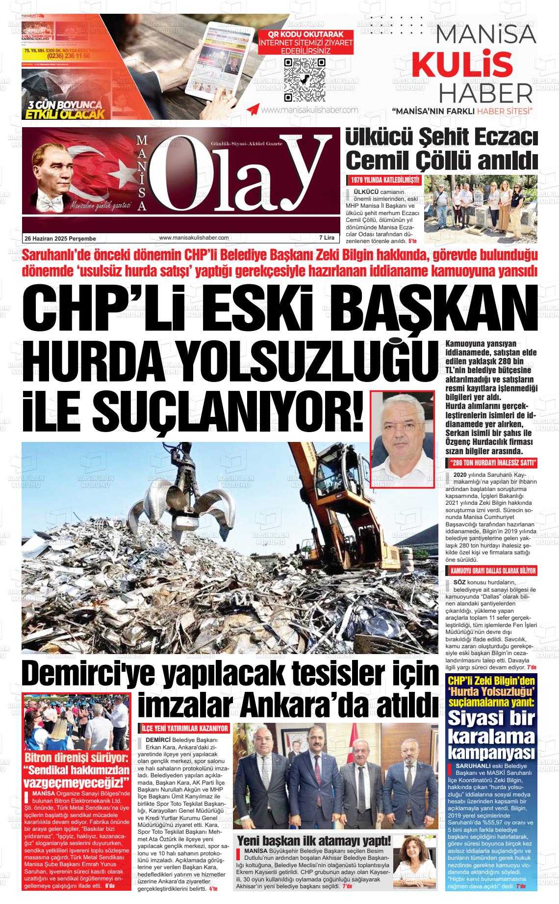 Manİsa Yerel Gazeteleri 08 Mart 2026, Pazar Günü Manşeti