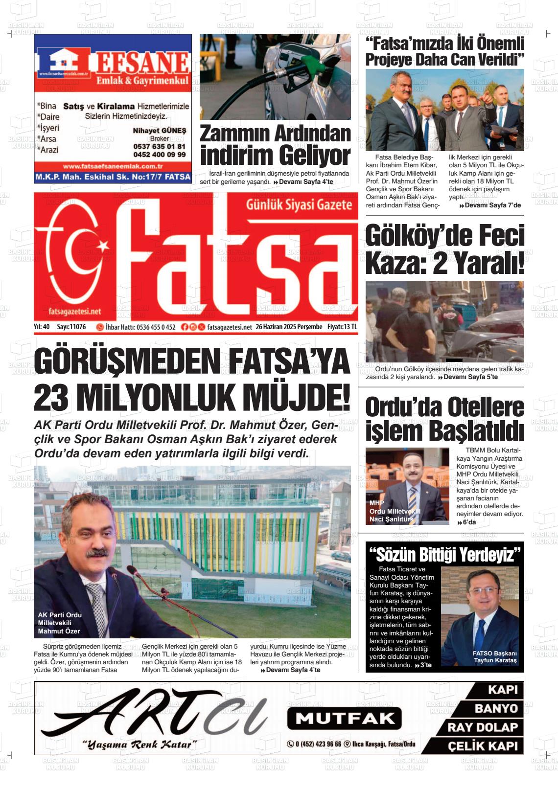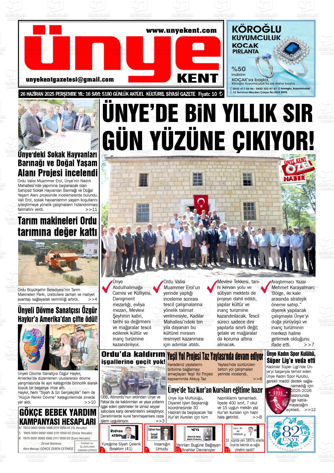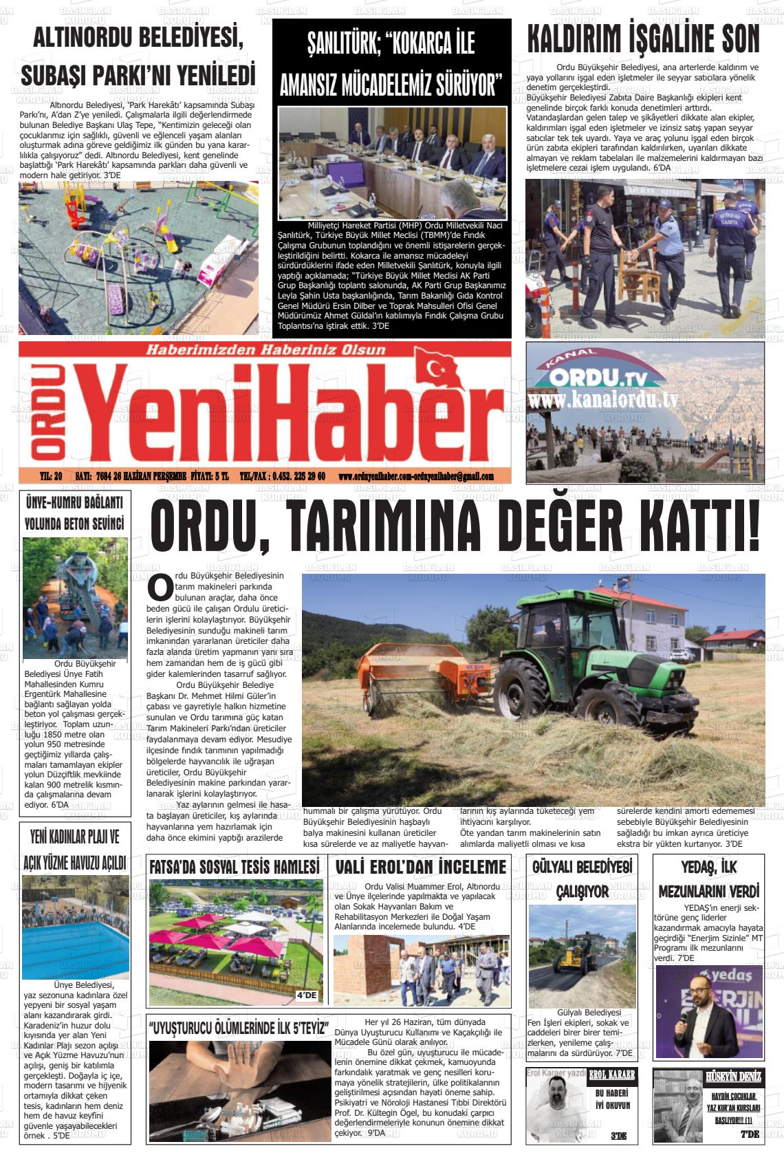 Ordu Yerel Gazeteleri 10 Mart 2026, Salı Günü Manşeti