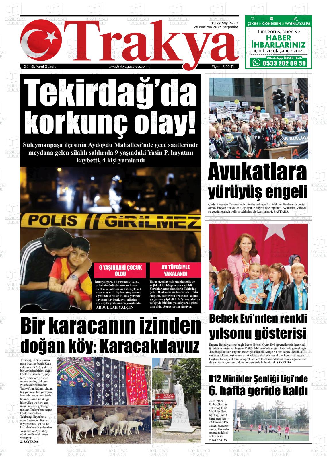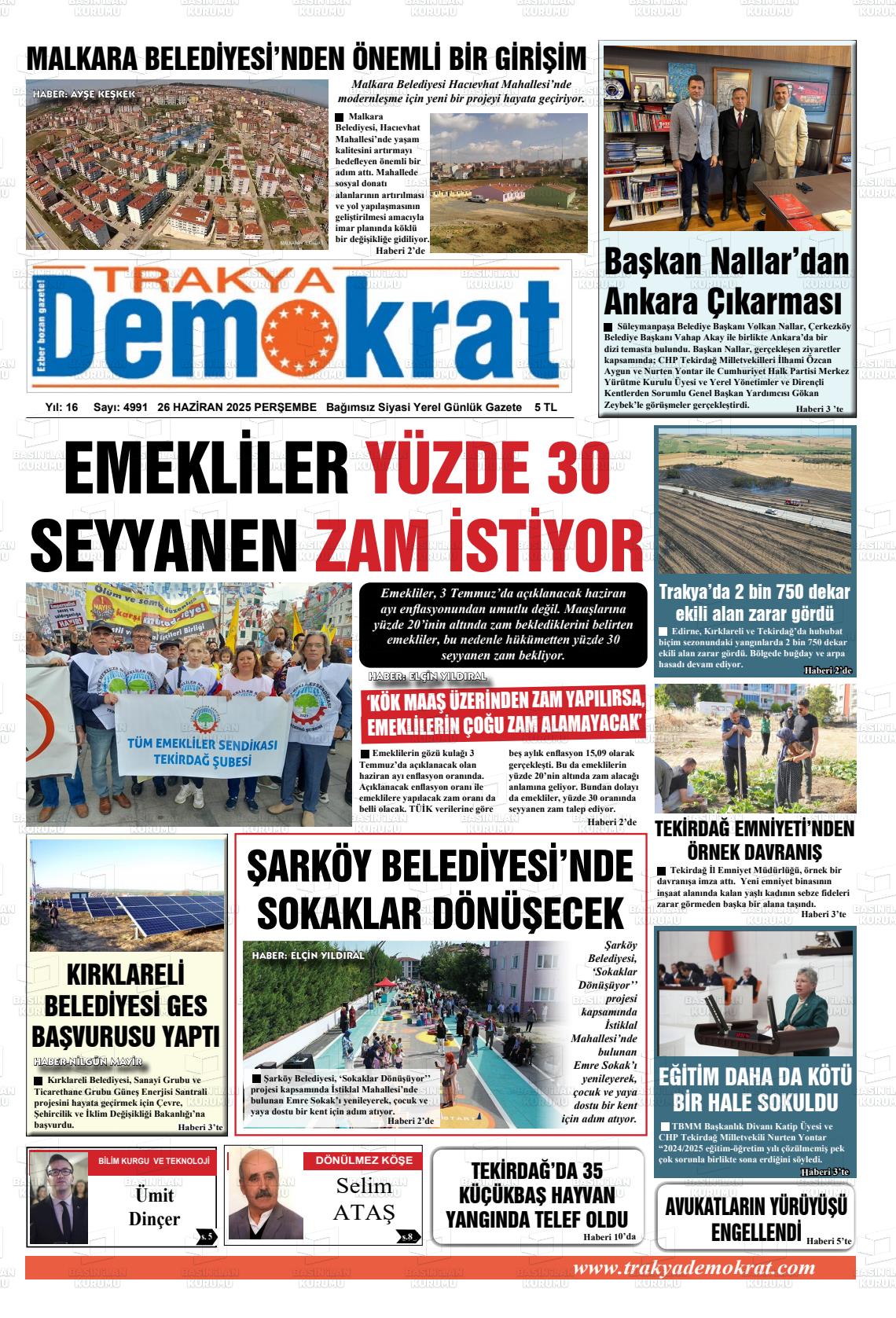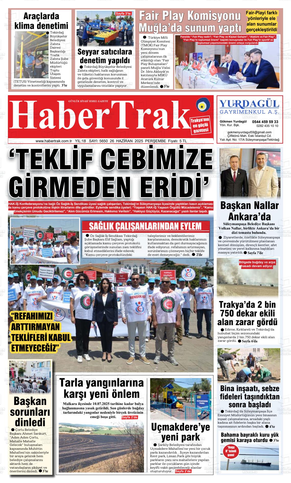 Tekİrdağ Yerel Gazeteleri 16 Mart 2026, Pazartesi Günü Manşeti
