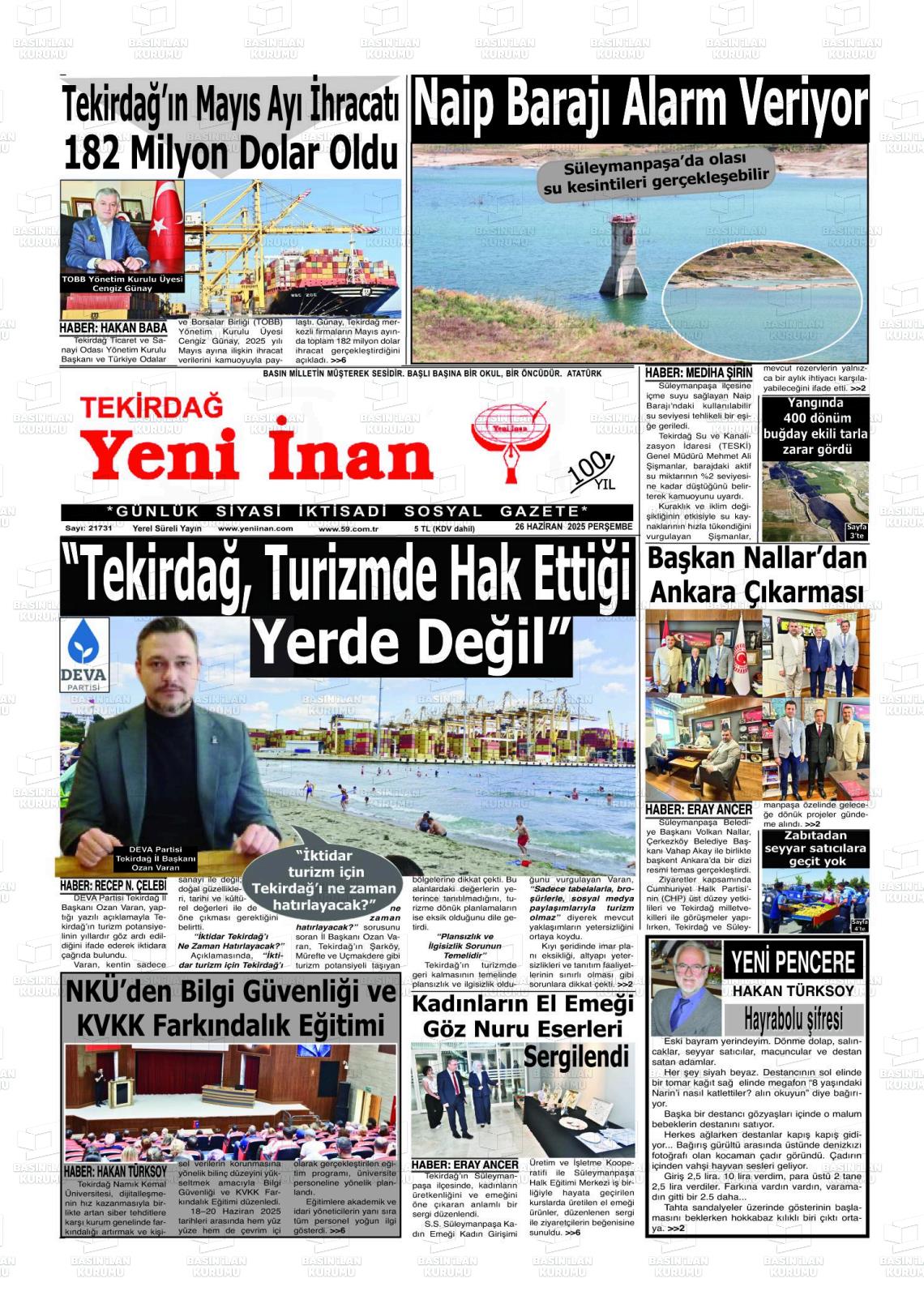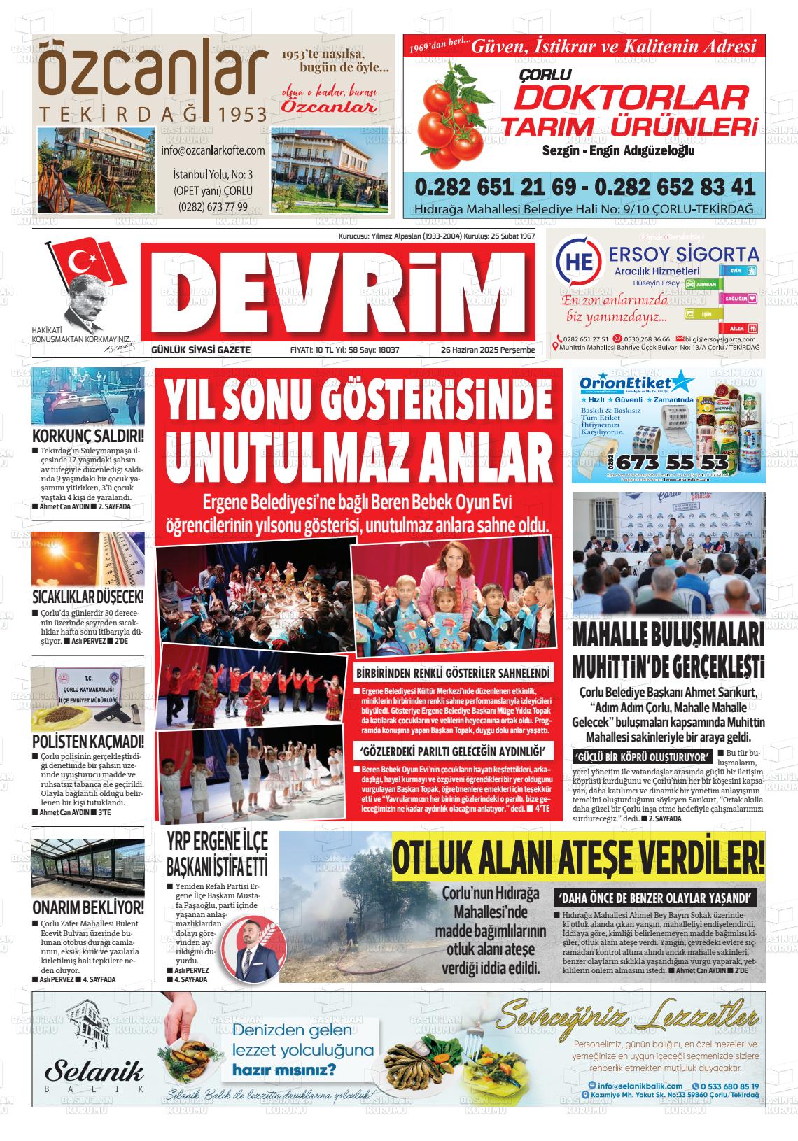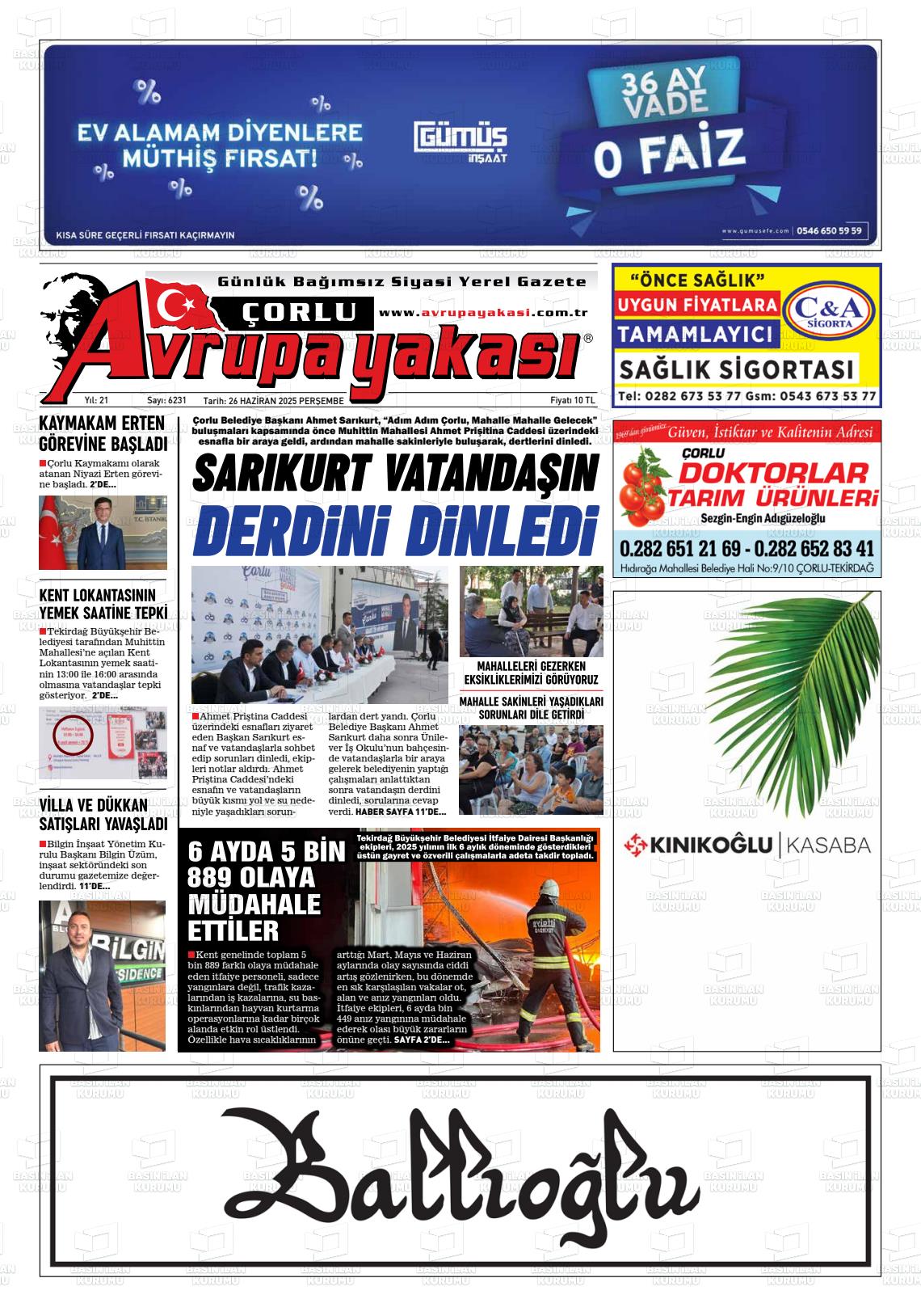Tekİrdağ Yerel Gazeteleri 16 Mart 2026, Pazartesi Günü Manşeti