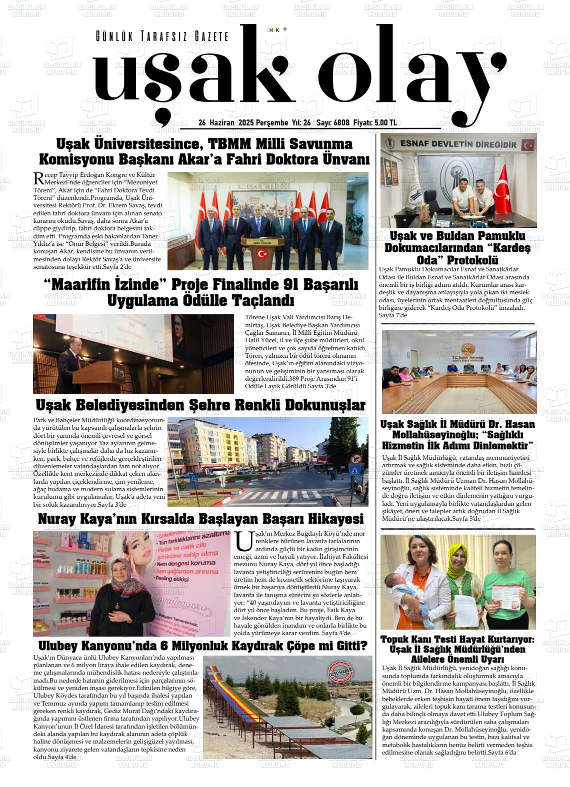 Uşak Yerel Gazeteleri 17 Mart 2026, Salı Günü Manşeti