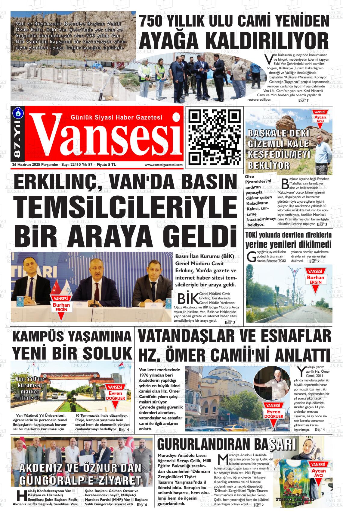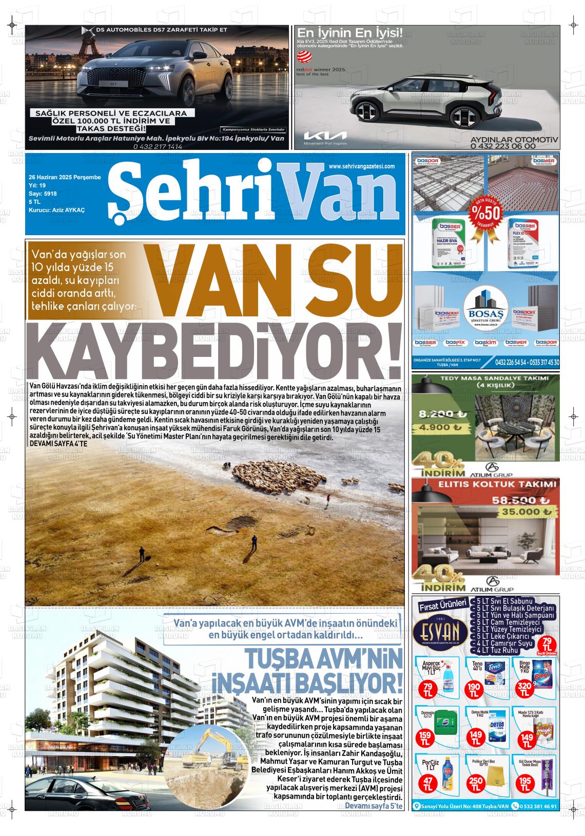 Van Yerel Gazeteleri 17 Mart 2026, Salı Günü Manşeti